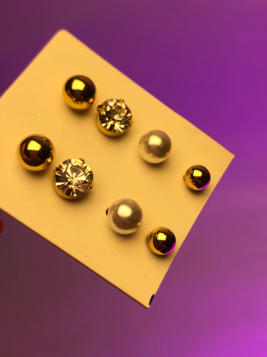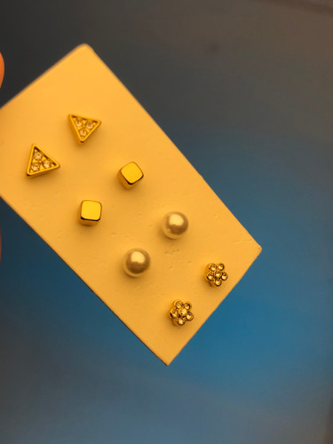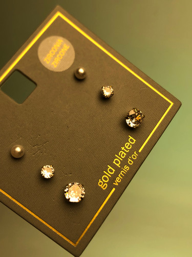گوشواره پک|پک گوشواره کریستالی|گوشواره مرواریدی|پک۳ تایی اکسسوری سنگzirconia ابکاری طلا