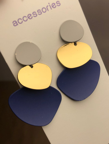 گوشواره رنگی|گوشواره ترند|گوشواره فشن آبی و طوسی سه لاین| گوشواره پینترستی آبی طلایی