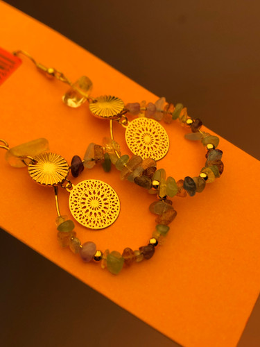 گوشواره سنگ نیمه قیمتی|گوشواره سنگی آویزبلند|گوشواره حلقه ای سنگ زیبا |اکسسوری ترند|گوشواره پینترستی |گوشواره زنانه