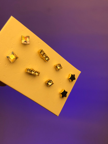 گوشواره پینترستی میخی۴ تایی کریستال |گوشواره نگینی پکی ارزان🎀پک گوشواره کریستالی|اکسسوری پکی|گوشواره ستاره طلایی|گوشواره ترند