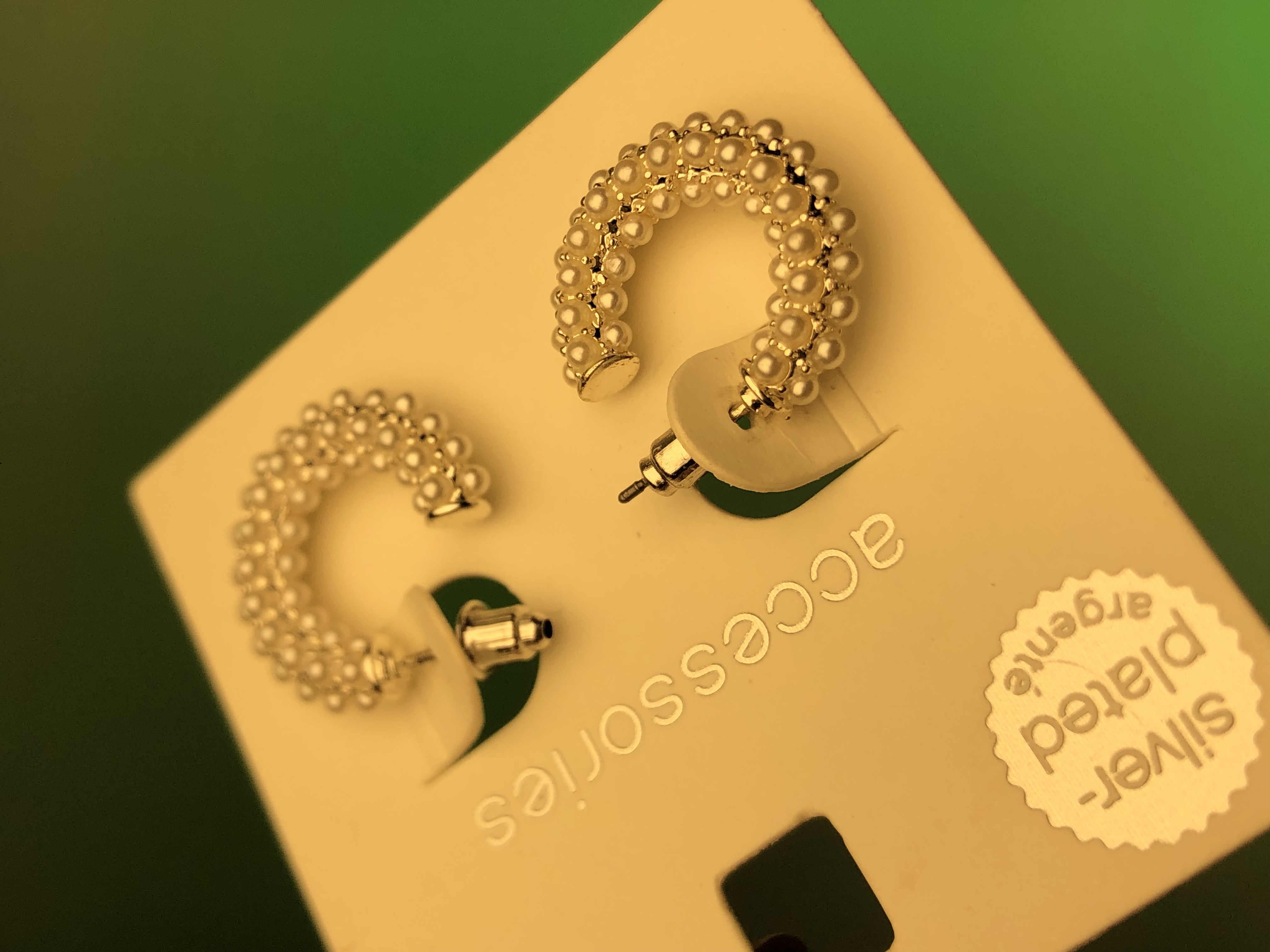گوشواره نیم حلقه میخی برجسته |اکسسوری مرواریدی|گوشواره مرواریدی ابکاری نقره|گوشواره ضدحساسیت|گوشواره ترند|گوشواره پینترستی