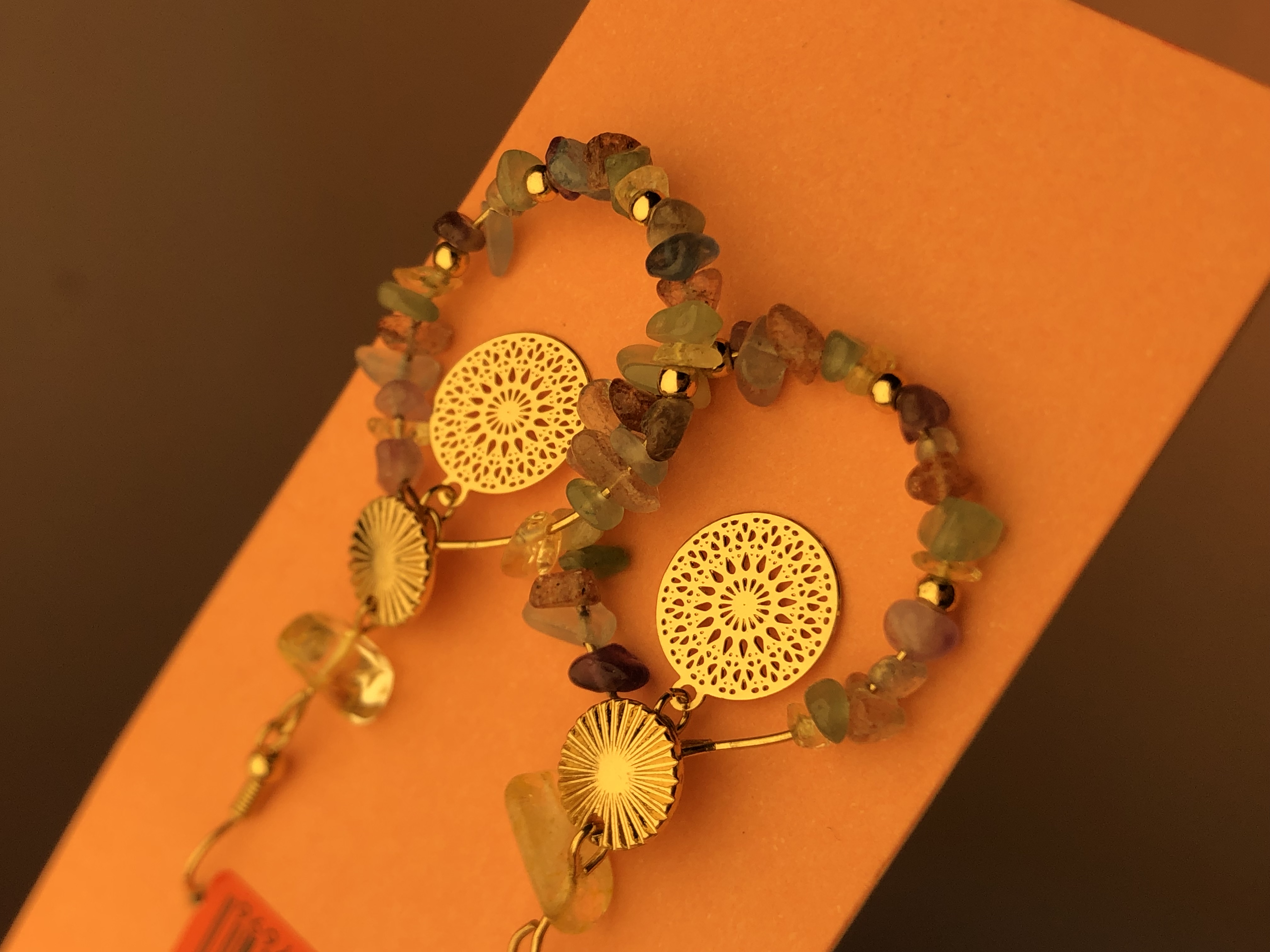 گوشواره سنگ نیمه قیمتی|گوشواره سنگی آویزبلند|گوشواره حلقه ای سنگ زیبا |اکسسوری ترند|گوشواره پینترستی |گوشواره زنانه