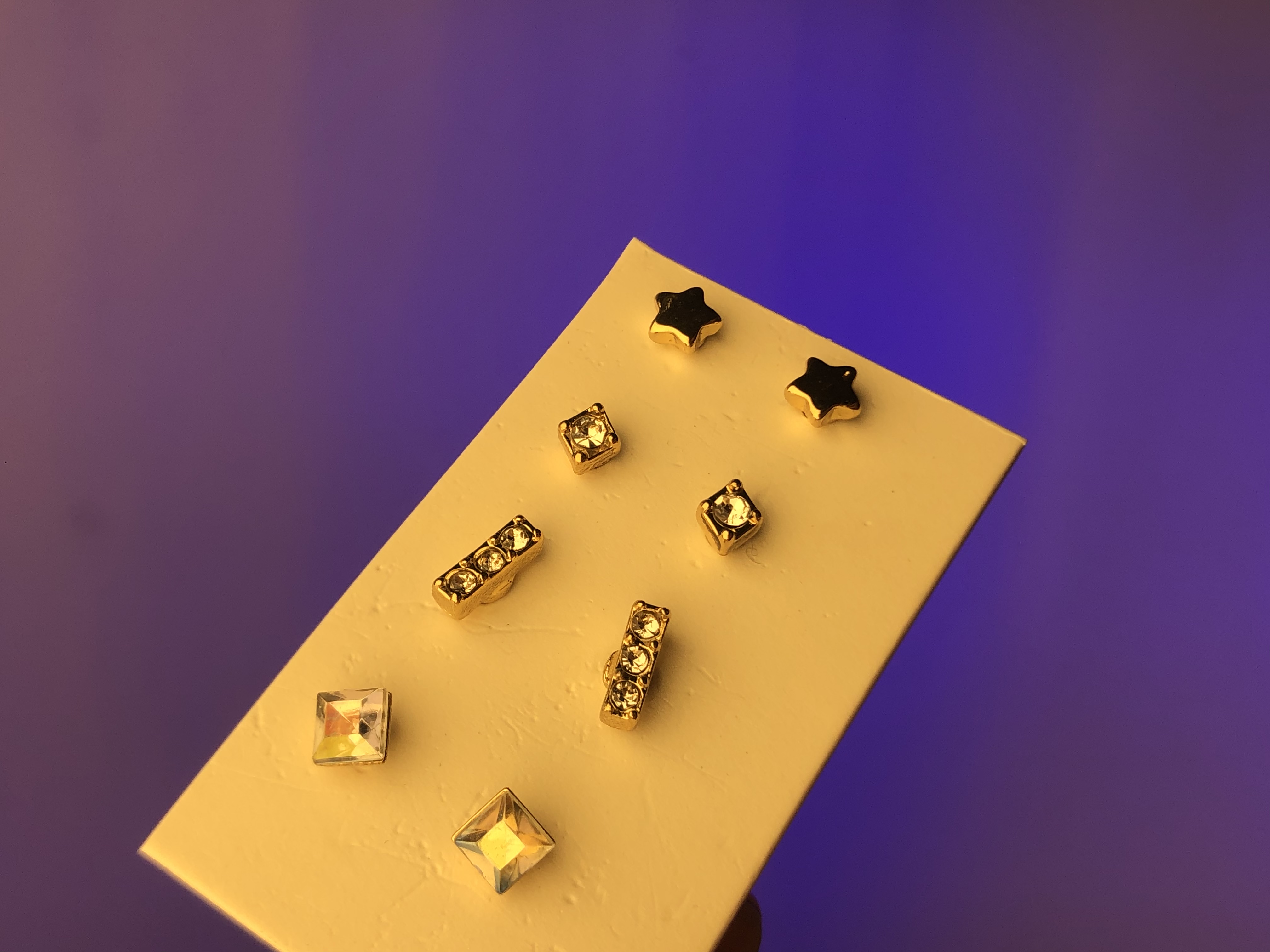 گوشواره پینترستی میخی۴ تایی کریستال |گوشواره نگینی پکی ارزان🎀پک گوشواره کریستالی|اکسسوری پکی|گوشواره ستاره طلایی|گوشواره ترند