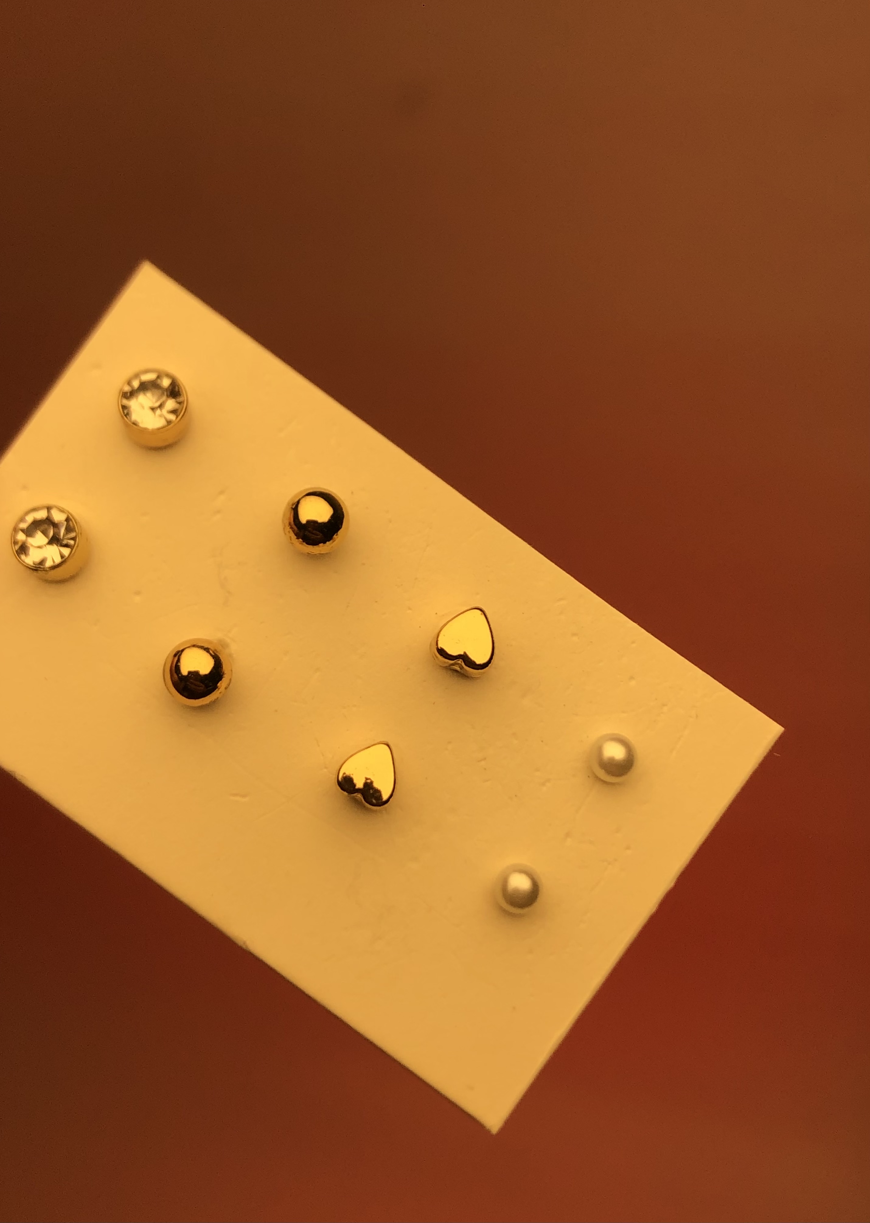 گوشواره پینترستی نگینی میخی۴ تایی کریستال |گوشواره نگینی پکی ارزان🎀پک گوشواره مروارید کریستالی|اکسسوری پکی|گوشواره قلب طلایی|گوشواره ترند