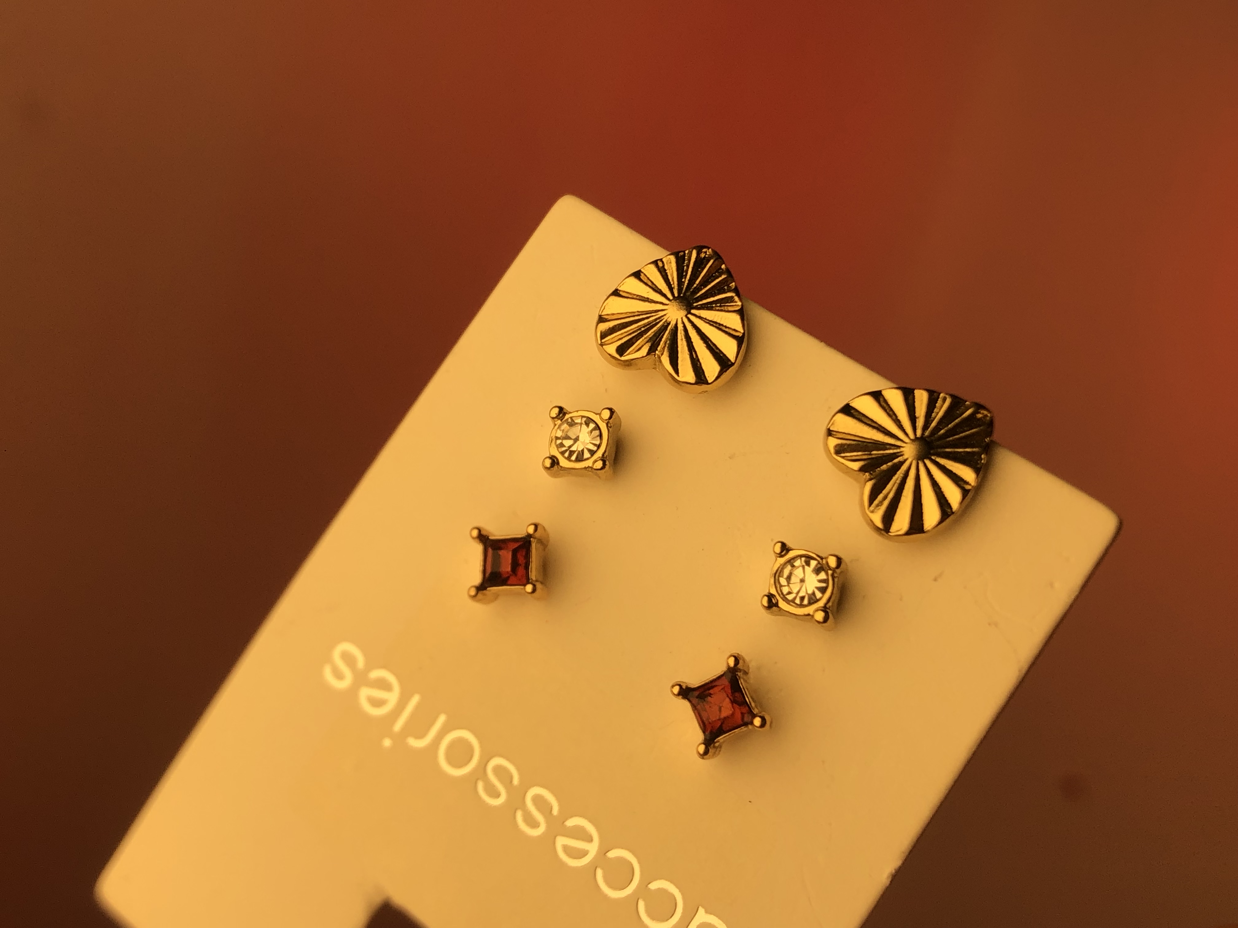 گوشواره پکی ۳تایی ابکاری طلا✨گوشواره قلب طرحدار،پک گوشواره کریستالی ترند پینترستی،گوشواره کیوت،کادو تولد،گوشواره قرمز نگینی،گوشواره کریستال قرمز