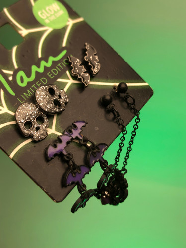 ناموجودگوشواره پکی ۴ تایی ،پک گوشواره مشکی،گوشواره اسکلت،گوشواره خفاش|گوشواره عنکبوت آویز|گوشواره فانتزی