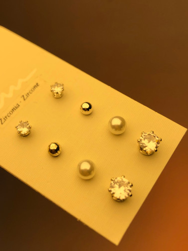 گوشواره پینترستی مرواریدی کریستالی ۴تایی|گوشواره پکی ارزان🎀پک گوشواره مروارید طلایی و سفید |اکسسوری پکی|پک گوشواره ۸۹ تومنی|گوشواره ترند سنگ zirconia