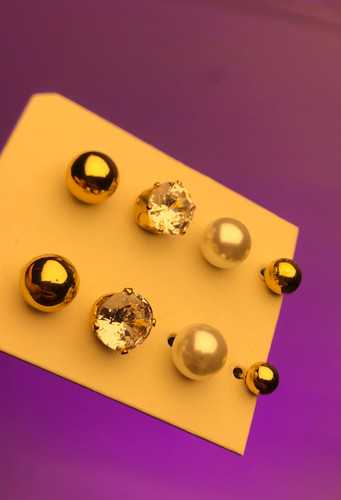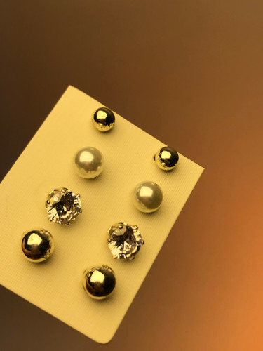 گوشواره مرواریدی طلایی|گوشواره پکی مروارید میخی|گوشواره پکی ۳تایی|۳جفت گوشواره زیر۱۰۰ تومن|پک گوشواره مروارید طلایی|گوشواره پینترستی