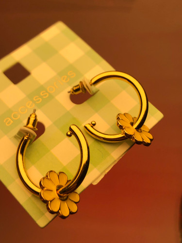گوشواره بابونه زرد- گوشواره ظریف - گوشواره گل زرد- گوشواره دخترونه - گوشواره مهمانی - گوشواره نیم حلقه طلایی آویز گل بابونه - گوشواره پینترستی کیوت