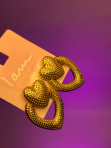 گوشواره قلب|گوشواره میخی قلب دوتایی طلایی|گوشواره مجلسی قلب|گوشواره پینترستی خاص|اکسسوری خاص