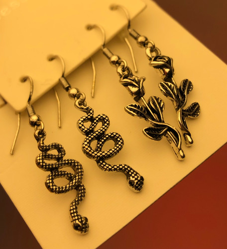 پک گوشواره پینترستی |گوشواره پکی اقتصادی🎀گوشواره مار|اکسسوری خاص|گوشواره گل رز مشکی|گوشواره فانتزی |پک فانتزی اکسسوری