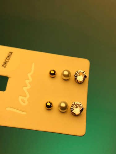 🫧پک ۳تایی گوشواره میخی مروارید و نگین برند Iam|گوشواره پکی|پک گوشواره|پک اکسسوری