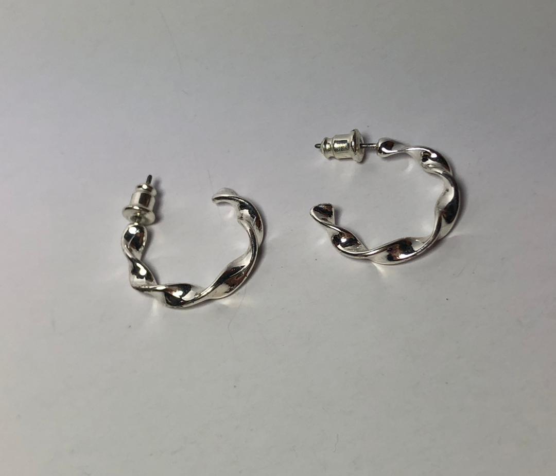 گوشواره اروپایی| گوشواره استیل آبکاری نقره نیم حلقه| گوشواره طرح موج |گوشواره مدرن|گوشواره نیم حلقه نقره ای