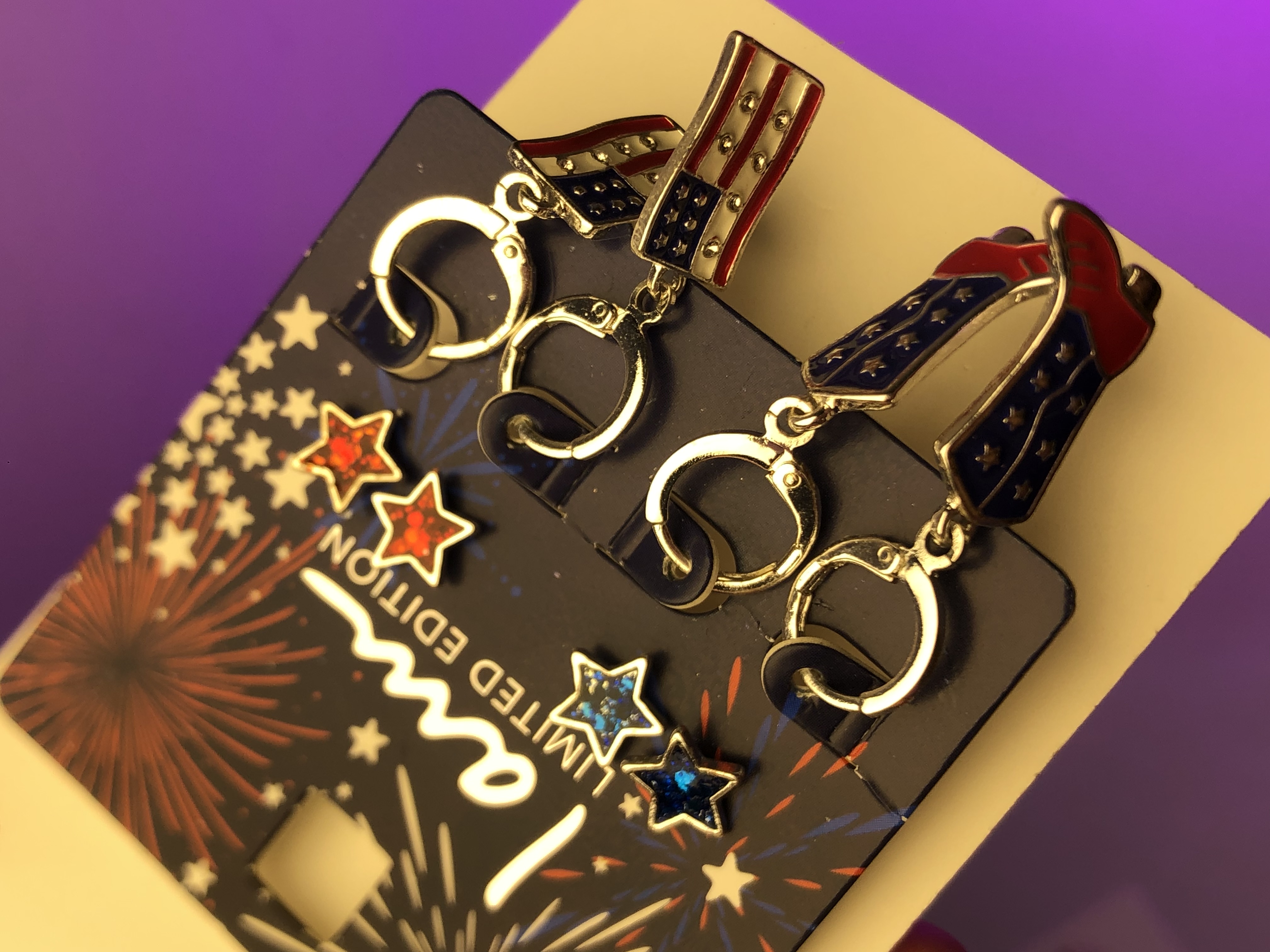 ناموجودگوشواره آمریکایی|گوشواره حلقه ای تمام نگین|گوشواره پرچم آمریکا|اکسسوری خاص|گوشواره بامزه|گوشواره ترند