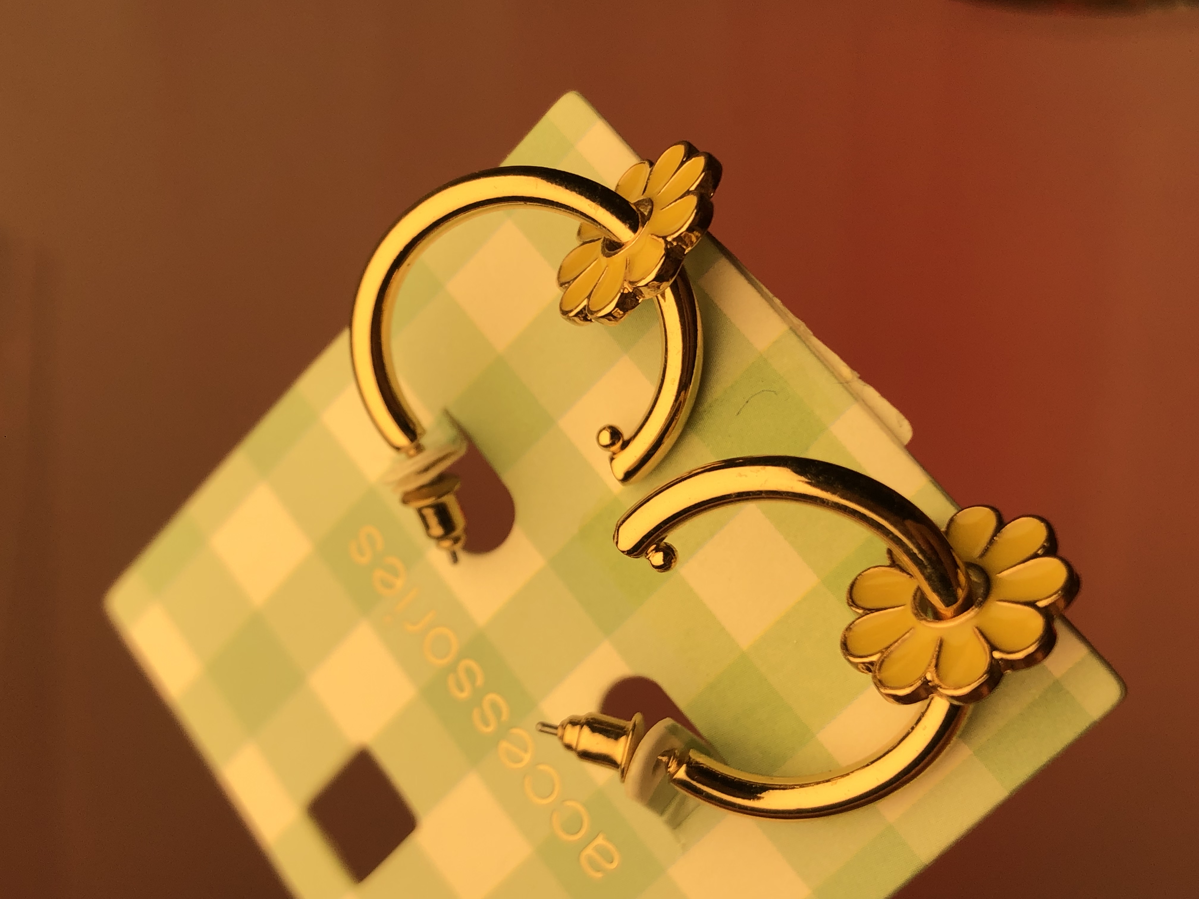گوشواره بابونه زرد- گوشواره ظریف - گوشواره گل زرد- گوشواره دخترونه - گوشواره مهمانی - گوشواره نیم حلقه طلایی آویز گل بابونه - گوشواره پینترستی کیوت