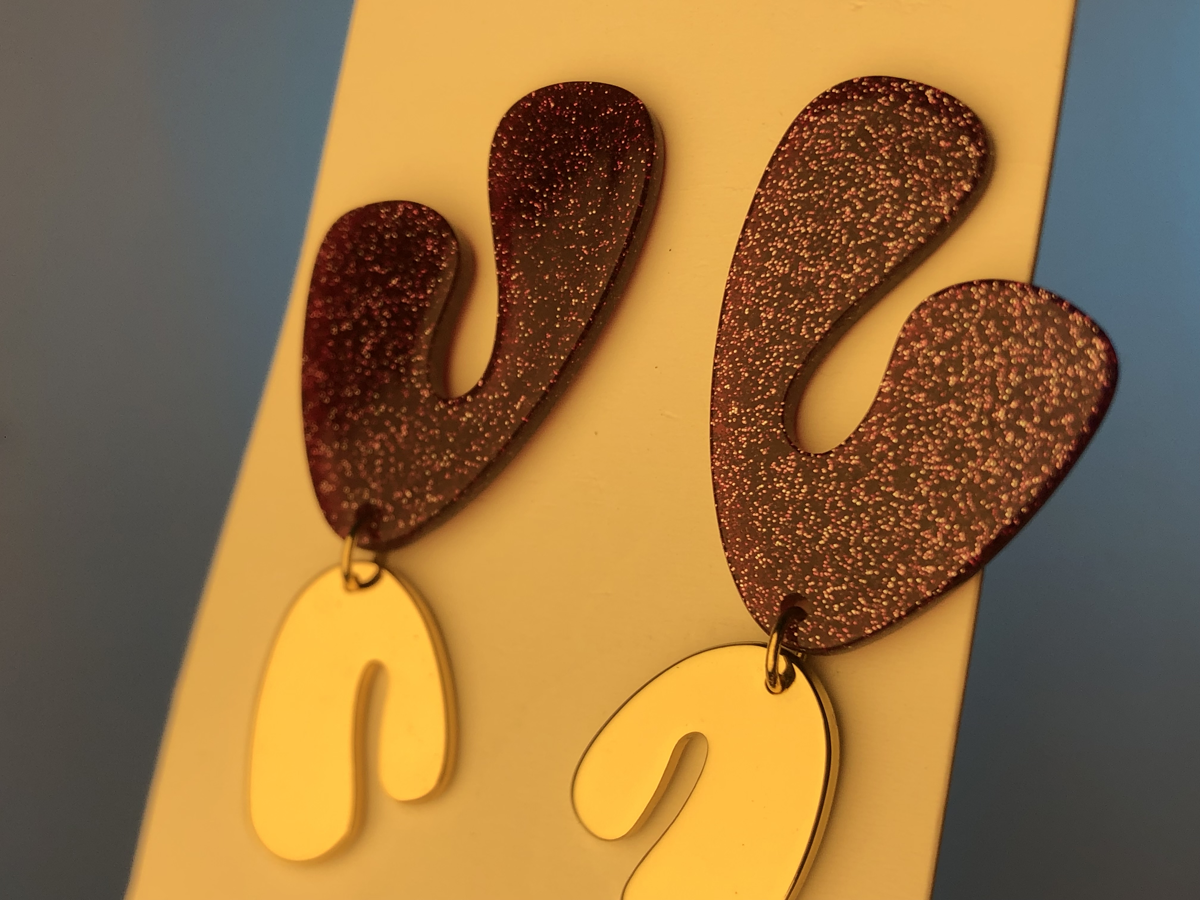 گوشواره رزینی شاین|گوشواره بنفش کیوت🔮گوشواره ترند- گوشواره طلایی بنفش درخشان - گوشواره مدروز طرح خاص - خاص ترین گوشواره وارداتی امسال - گوشواره پینترستی 🫠