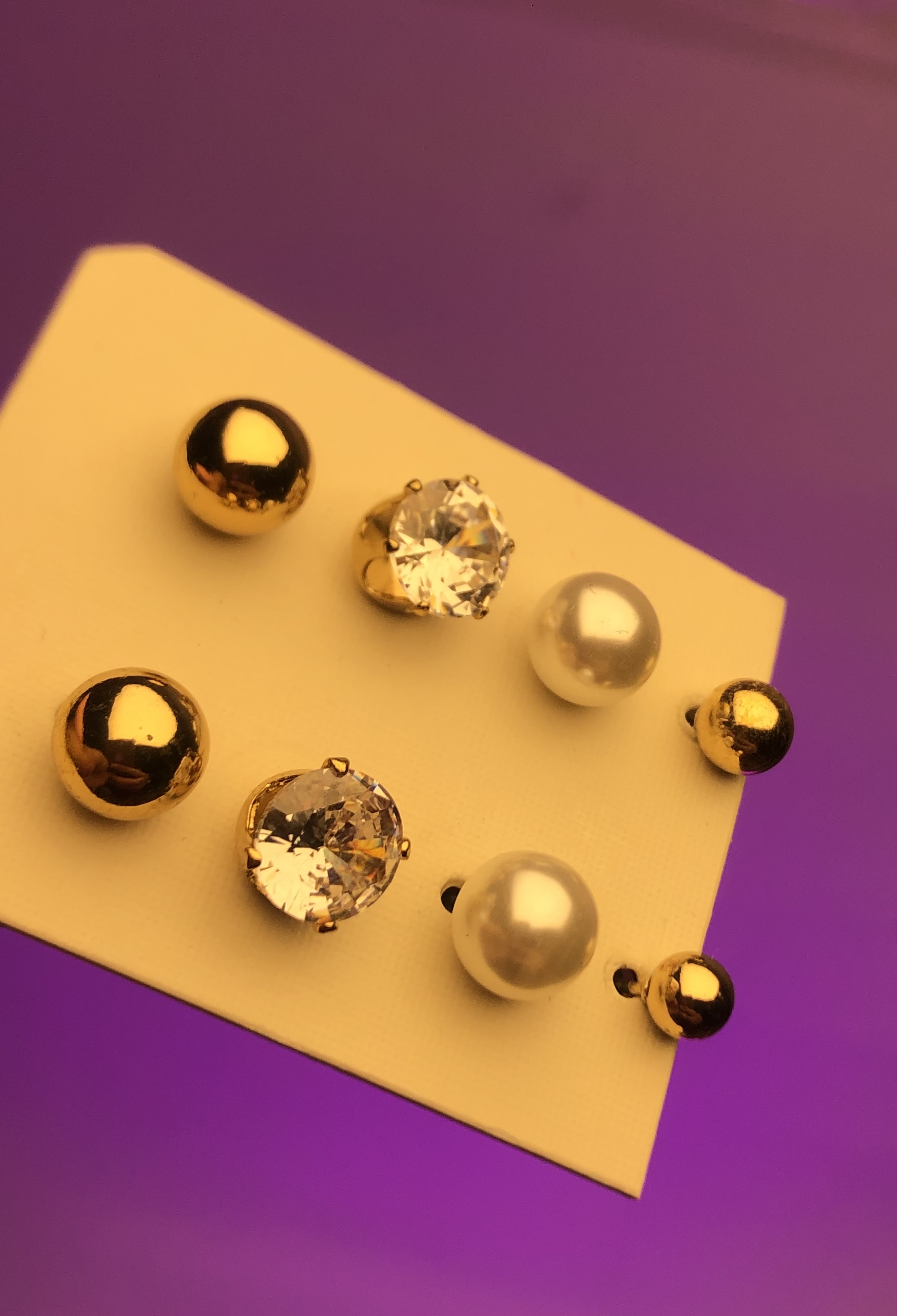 گوشواره پینترستی مرواریدی کریستالی ۴تایی|گوشواره پکی ارزان🎀پک گوشواره مروارید طلایی و سفید |اکسسوری پکی|پک گوشواره ۸۹ تومنی|گوشواره ترند سنگ zirconia