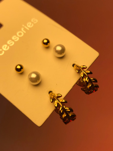 پک گوشواره |پک ۳ تایی|گوشواره پکی|پک مرواریدی |پک اکسسوری اقتصادی|گوشواره برگ طلایی
