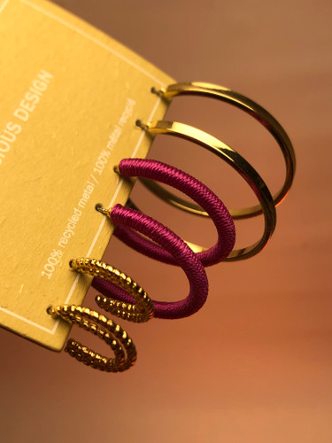 گوشواره پکی حلقه ای|گوشواره حلقه ای مینیمال|گوشواره ترندروز|گوشواره حلقه ای سرخابی صورتی|پک گوشواره ۳تایی اقتصادی