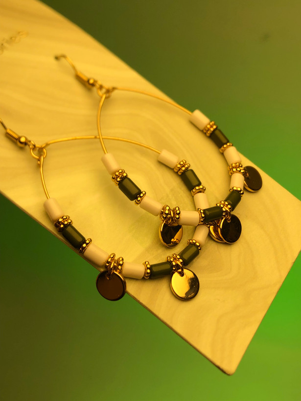 🧝🏻♀️گوشواره حلقه ای مهره ای بزرگ |گوشواره آویز مجلسی|گوشواره خاص کادو تولد|گوشواره مهره ای حلقه ای|گوشواره مهره سبز و سفید |گوشواره عربی| گوشواره اویز اشکی با مهره های سفید و سبز تیره و اویز سکه گوشواره خاص|گوشواره مدرن شیک زنانه