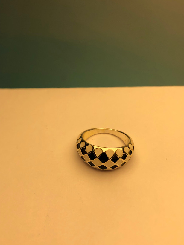 انگشتر رنگ ثابت|انگشتر طلایی دخترانه|انگشتر قلبی|انگشتر پینترستی |انگشتر شطرنجی|اکسسوری زنانه|انگشتر خاص |انگشتر منحنی سیاه سفید
