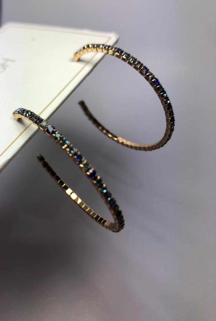 گوشواره سنگی آبکاری طلا برندTOSH | گوشواره آبی |گوشواره نگینی آبی |گوشواره میخی حلقه ای نگینی