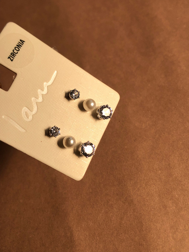 🫧پک ۳تایی گوشواره میخی مروارید و نگین برند Iam|گوشواره پکی|پک گوشواره|پک اکسسوری