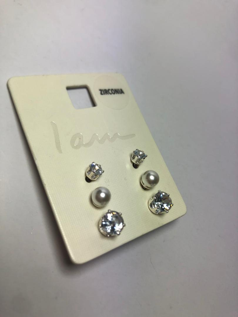 🫧پک ۳تایی گوشواره میخی مروارید و نگین برند Iam|گوشواره پکی|پک گوشواره|پک اکسسوری