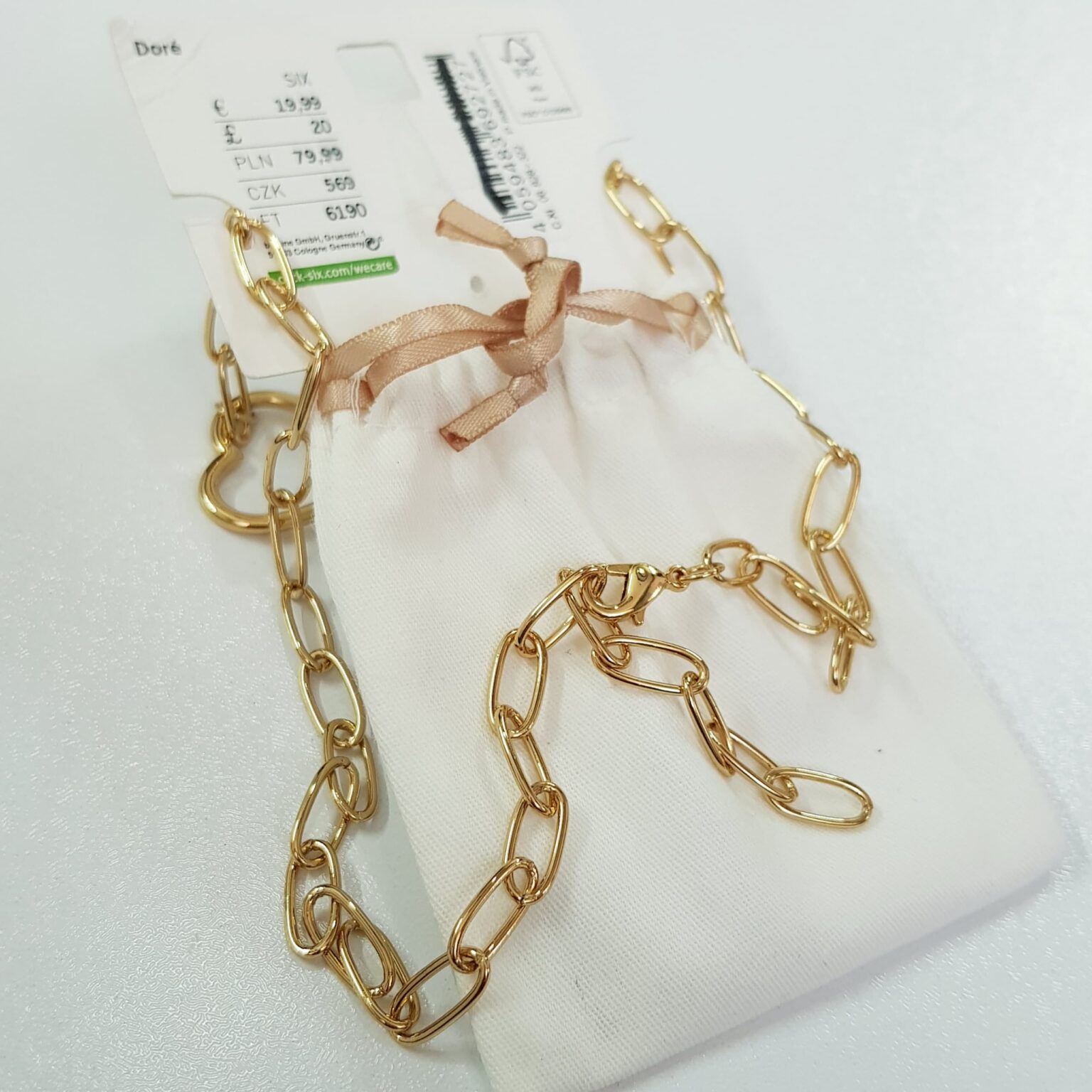 گردنبند زنجیر درشت آبکاری طلا آویز قلب ، بهمراه کیف مخصوص اکسسوری
