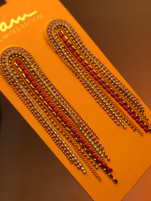 گوشواره آویز چندلاین|گوشواره مجلسی صورتی|گوشواره ریسه ای|گوشواره چندرنگ|گوشواره پینترستی ترند
