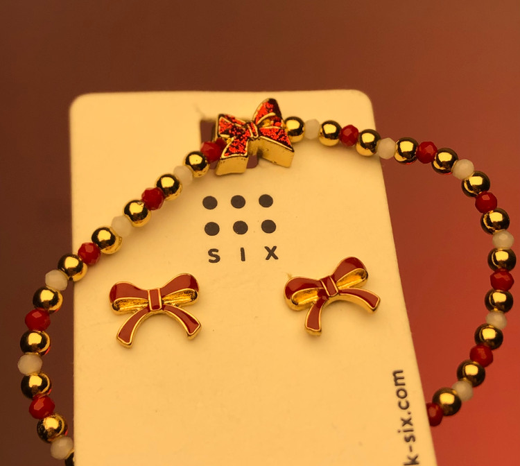 پک گوشواره و دستبند |گوشواره پاپیون قرمز میخی|دستبندقرمز طلایی|دستبند پاپیون قرمز|ست دستبند و گوشواره پینترستی
