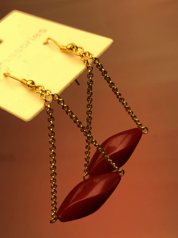 گوشواره آویز طلایی زرشکی|گوشواره مجلسی اویزبلند|گوشواره زنانه خاص|ارزان ترین قیمت‌اکسسوری