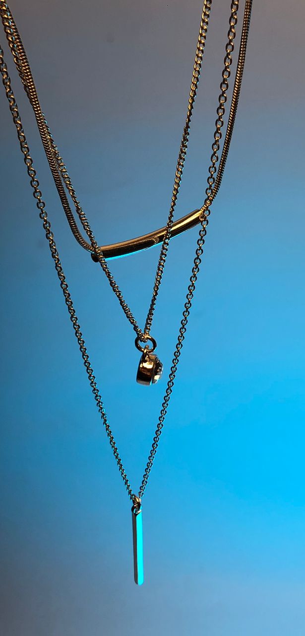 گردنبند مینیمال ظریف|گردنبند ۳لاین|گردنی ۳رج تماما استیل|رولباسی چندردیفه|گردنبند با آویز کریستال و خط|ترند|گردنبند چندلایه مجلسی|گردنبند پینترستی