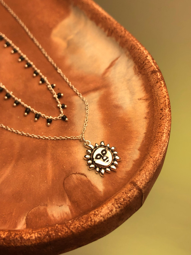 گردنبند ۲لاین|گردنبد خورشیدی|گردنبند دولایه نقره ای مشکی|زنجیر خاص|هدیه|گردنبند ترند