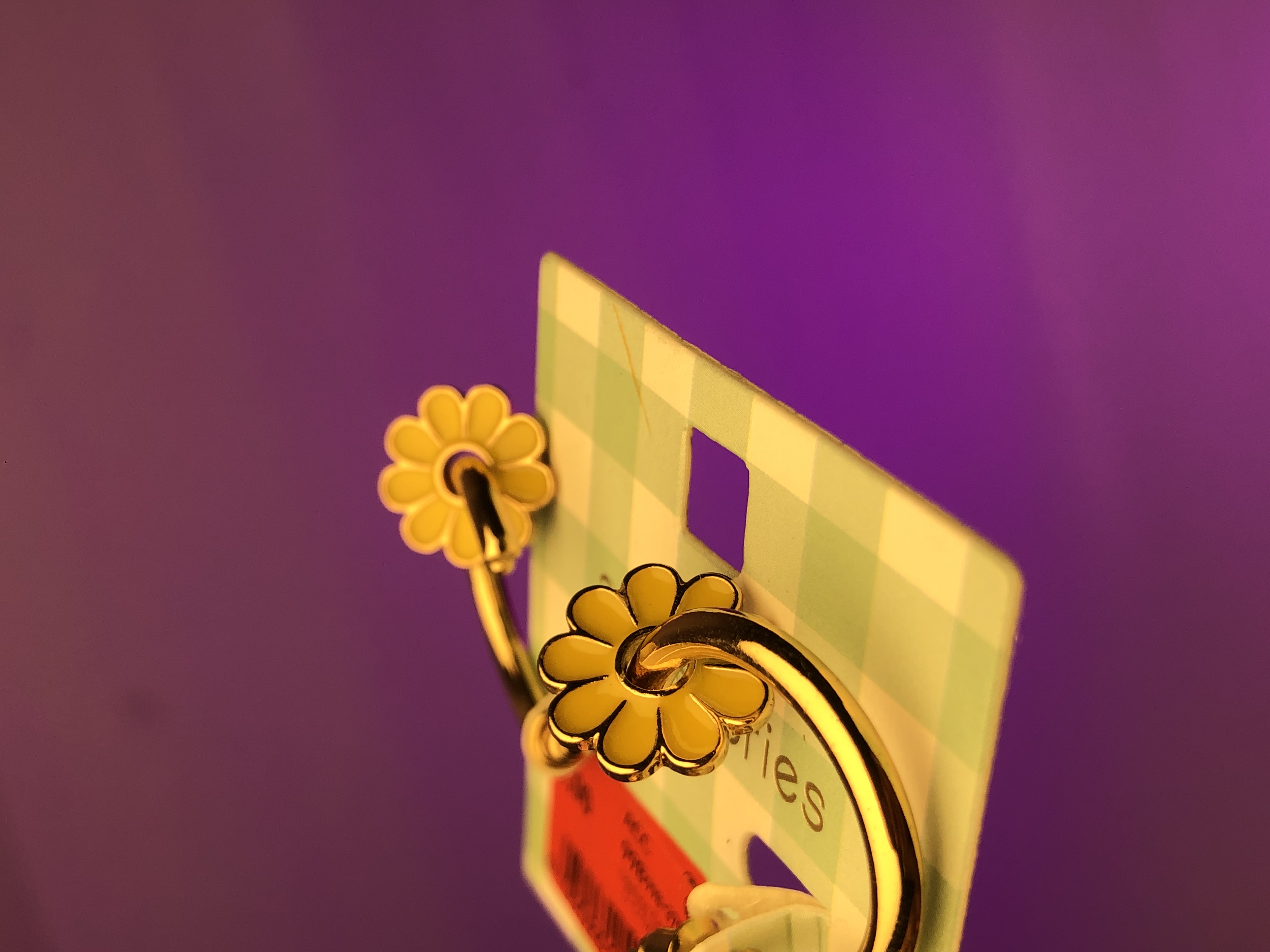 گوشواره بابونه زرد- گوشواره ظریف - گوشواره گل زرد- گوشواره دخترونه - گوشواره مهمانی - گوشواره‌ نیم حلقه طلایی آویز گل بابونه - گوشواره پینترستی کیوت