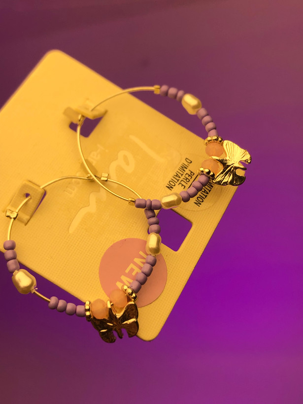گوشواره منجوقی و اویز پروانه🦋گوشواره بنفش کیوت🔮گوشواره ترند- گوشواره دخترونه - گوشواره حلقه ای مهره ای - گوشواره پروانه دار🦋✨ - گوشواره پینترستی 🫠