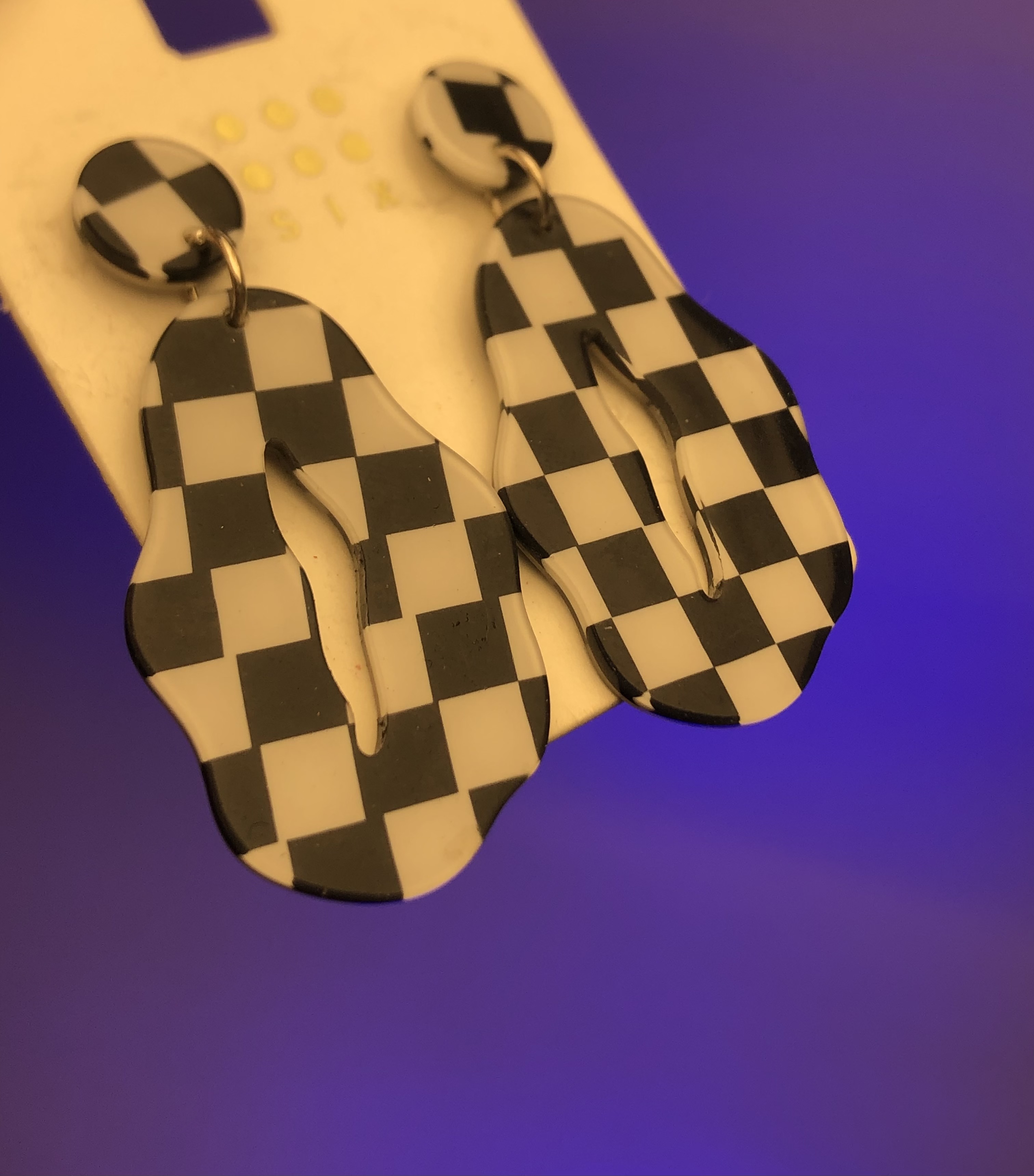 گوشواره شطرنجی بزرگ|گوشواره دفرمه آویز،گوشواره ترند،گوشواره سیاه سفید ،کادو تولد خاص،گوشواره چهارخونه،گوشواره پینترستی کیوت
